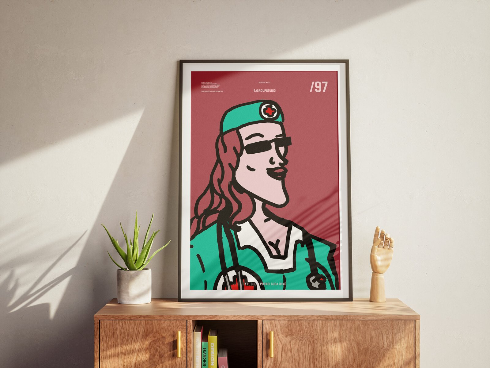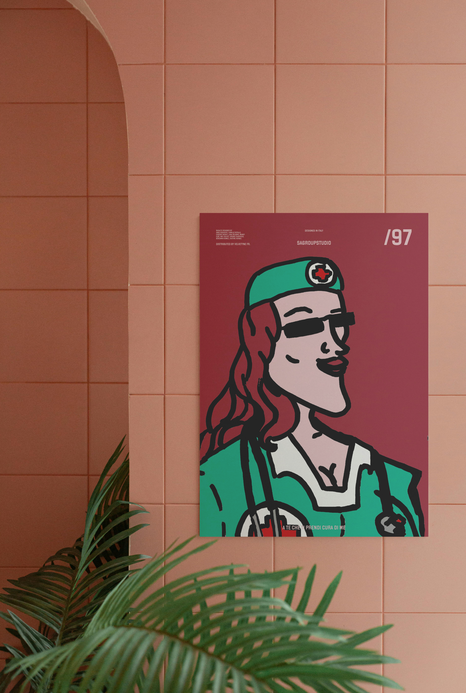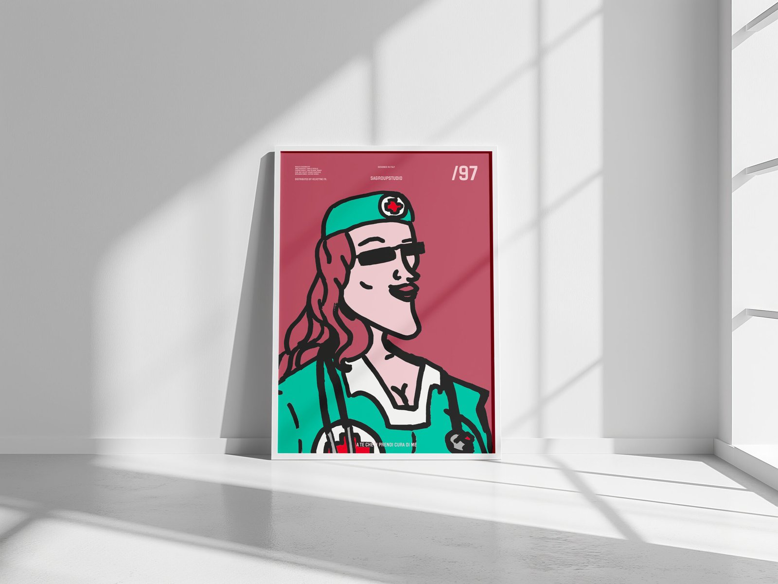 Questo poster celebra chi ogni giorno si prende cura degli altri con professionalità, dedizione e sorriso. Questa opera trasforma la figura dell’infermiera in una vera icona contemporanea: una stella della vita quotidiana.